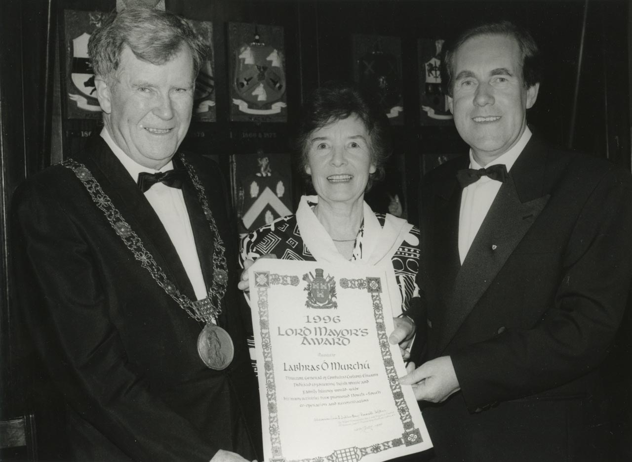 The award citation referred to the Ardstiúrthóir of Comhaltas as 'an excellent ambassador for Ireland and her people'. The citation reads as follows: